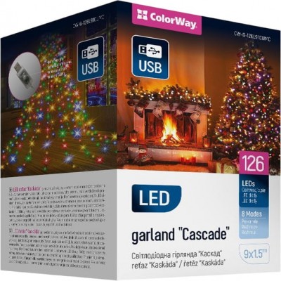 Елегантний дизайн: Гірлянда «Каскад» призначена для розміщення на верхівці ялинки, утворюючи 9 вертикальних променів по 1.5 метра, кожен з яких прикрашений 14 світлодіодами, що випромінюють кольорове світло.