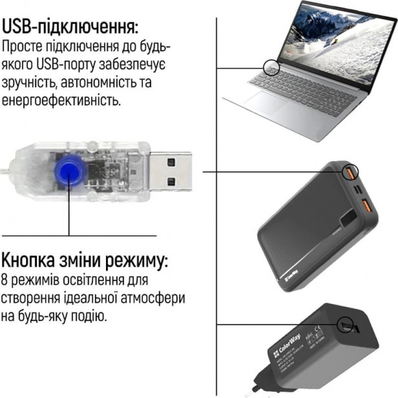 USB-підключення: Підключається до будь-якого USB-порту, що забезпечує зручність, автономність і високу енергоефективність.